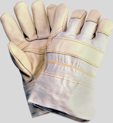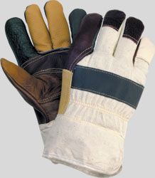MERCEDES furniture leather gloves, assorted colours, patch-palm, white back and canvas cuff, lining EN388 CAT2 |