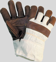 MERCEDES furniture leather gloves, brownish colours, patch-palm, white back and canvas cuff, lining EN388 CAT2 |