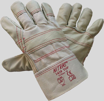 NITRAS MERCEDES furniture leather gloves, only light colours, one-piece palm, white back and canvas cuff, lining EN388 CAT2 |