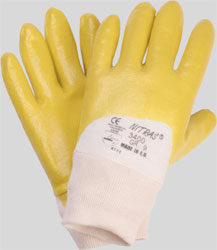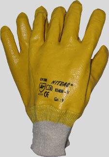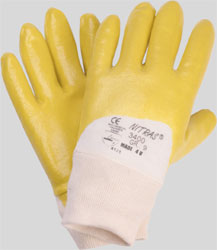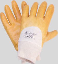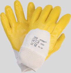 NITRAS nitrile gloves, yellow, nitrile coating on interlock liner, open back, knitted wrist