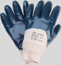 NITRAS nitrile gloves, blue, nitrile coating on cotton jersey liner, open back, knitted wrist