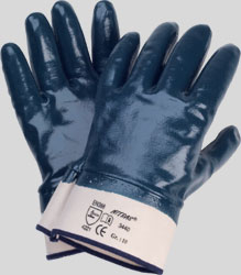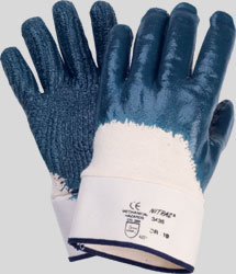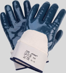 NITRAS nitrile gloves, blue, nitrile coating on cotton jersey liner, open back, canvas cuff