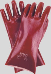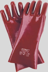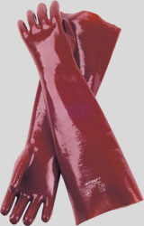 Nitras PVC gloves, reddish brown, fully coated, double dipped, 35cm length EN 388 CAT2 and EN 374 CAT3 |