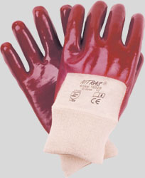 Nitras PVC gloves, reddish brown, knitted wrist, open back EN 388 CAT2 |