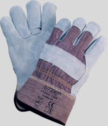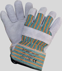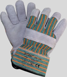 and rubberized cuff, double-stitched, reinforced palm (split leather)