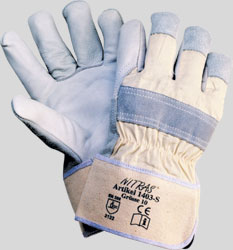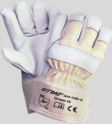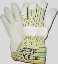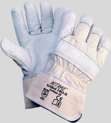 gloves, leather selection A, lining, white back and canvas cuff, double